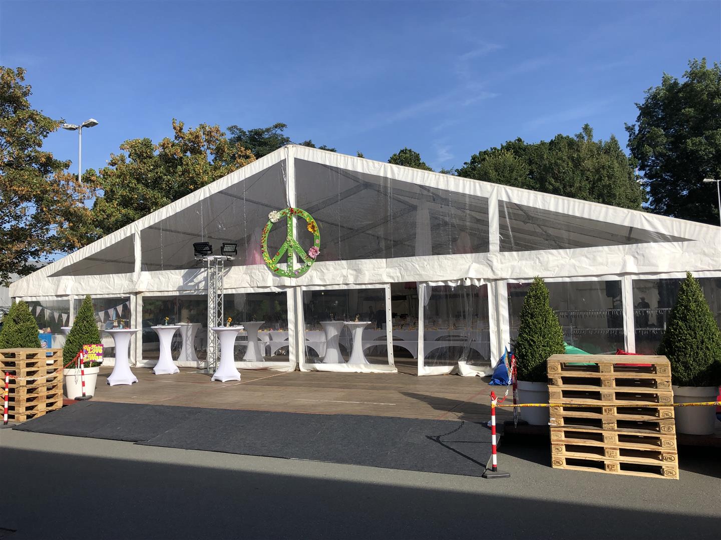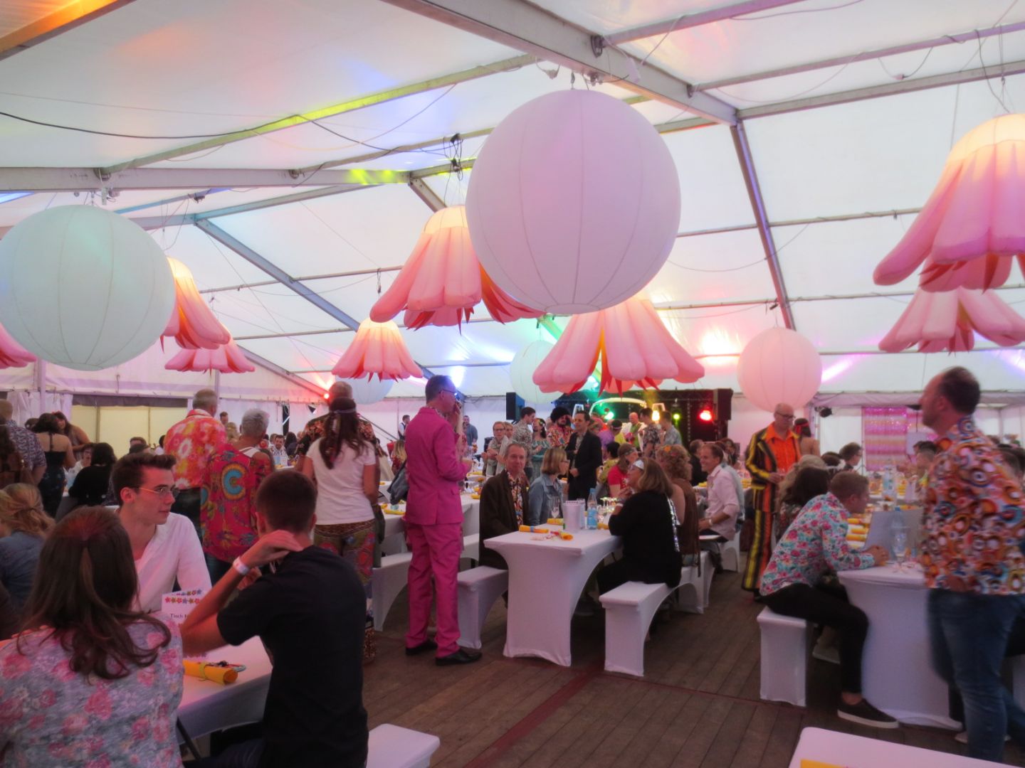 Gefeiert wurde in einem großen Zelt auf dem Wortmann-Gelände. Getreu dem Motto war dieses natürlich kunterbunt geschmückt und die Tische wurden mit Peace-Ketten, Süßigkeiten und bunten Sonnenbrillen dekoriert.