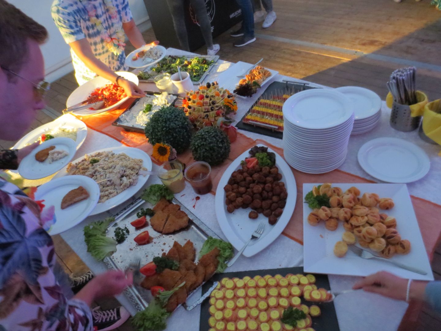 Zur Stärkung wurde ein großes Buffet bereitgestellt und es wurde ein Eiswagen bestellt, bei dem sich jeder seinen eigenen kleinen Eisbecher zusammenstellen konnte. Der DJ führte uns durch eine kleine Zeitreise zurück in die 70er Jahre. Mit Liedern aus der damaligen Zeit hat er für jede Menge Stimmung bei allen Mitarbeitern gesorgt. Die Showeinlage eines Saxophonisten und eine Polonaise quer durchs ganze Zelt steigerten diese noch zusätzlich.
