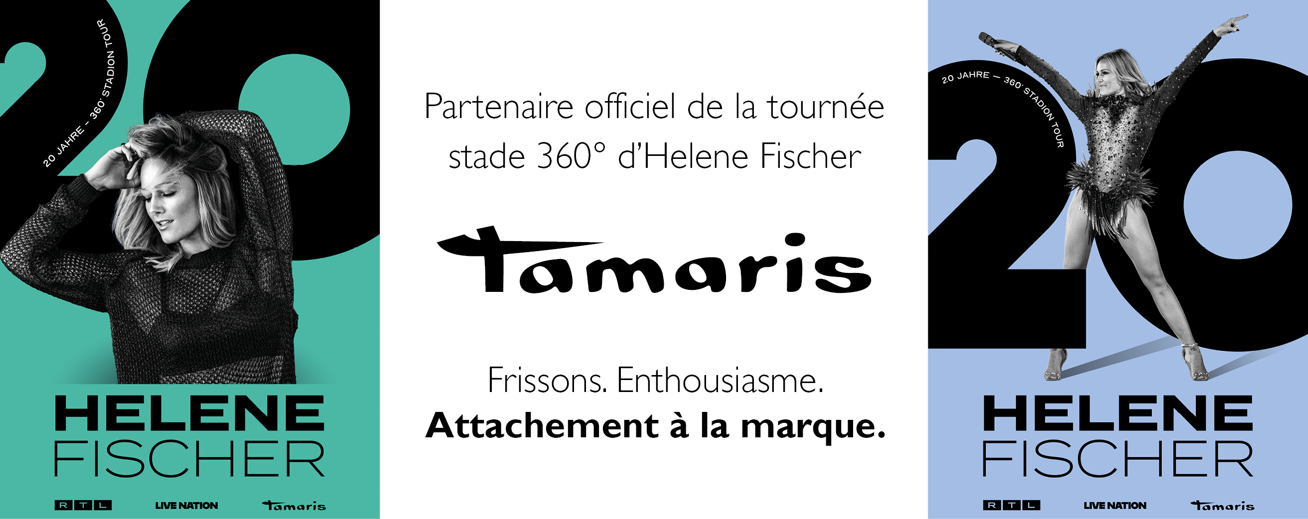 Quand Helene Fischer envoûte le stade, Tamaris rend l’instant parfait : en 2026, la première marque de chaussures européenne devient partenaire de l’une des tournées de concerts les plus spectaculaires de l’année. À l’occasion de son 20e anniversaire de scène, Live Nation organise pour Helene Fischer une tournée exceptionnelle en stades à 360°, du 10 juin au 17 juillet 2026, avec 15 concerts. Neuf villes allemandes, ainsi que Vienne et Zurich, figurent au programme.